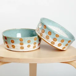 BARI MOSS CERAMICS Ceramic Spotted Jade Dog Bowl (Made In The USA)