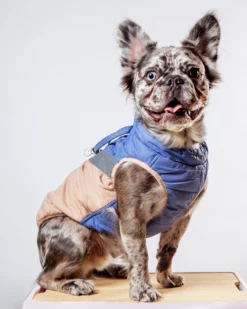 GOOBY Mountaineer Waterproof Dog Harness Jacket In Tan & Moonstone Blue (FINAL SALE)