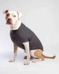 DOG & CO. COLLECTION The Uptown Cable Knit Sweater In City Slush Grey Merino Wool (Made In NYC)