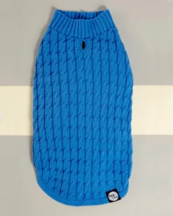 DOG & CO. COLLECTION The Uptown Cable Knit Sweater In French Blue American Cotton (Made In NYC)