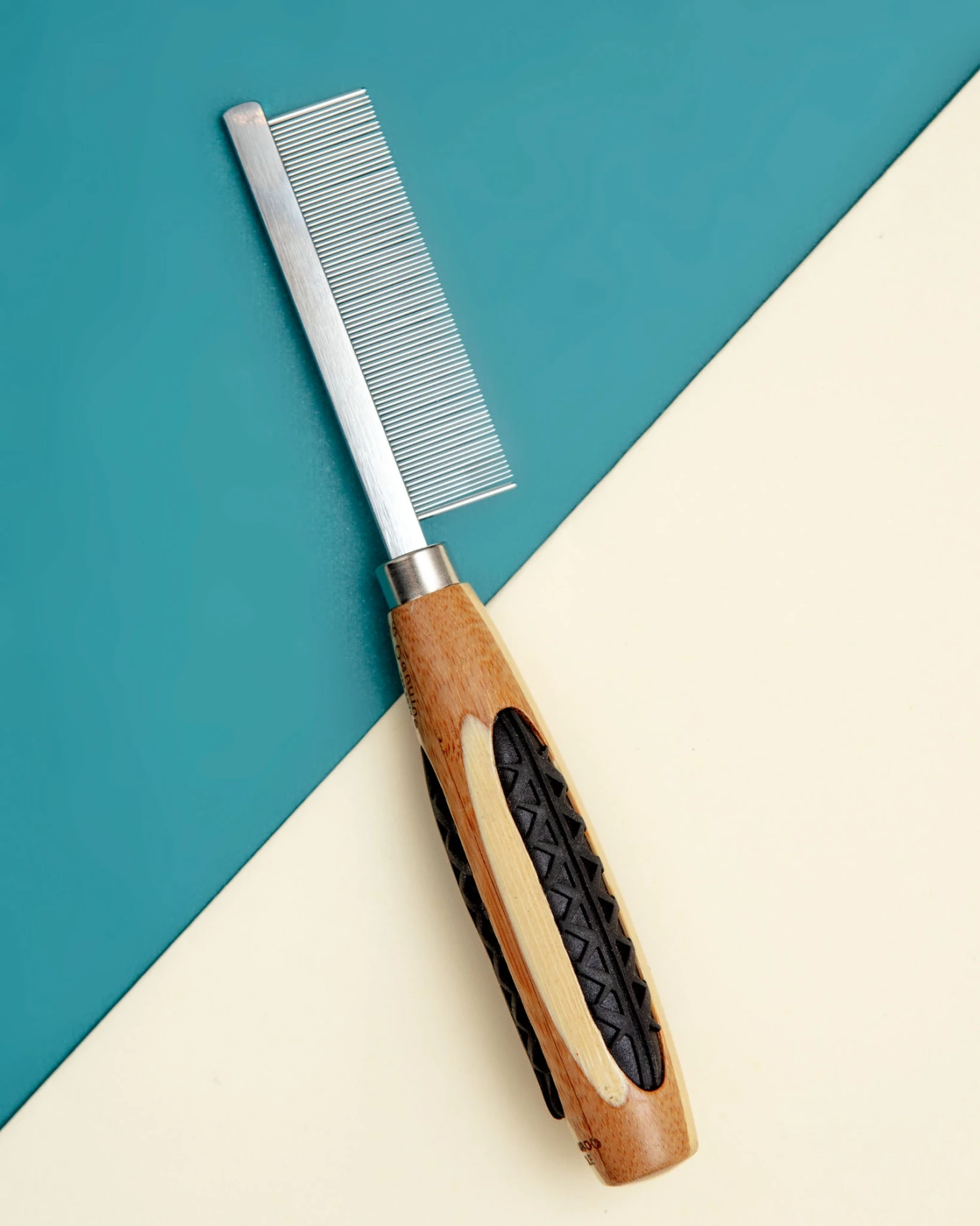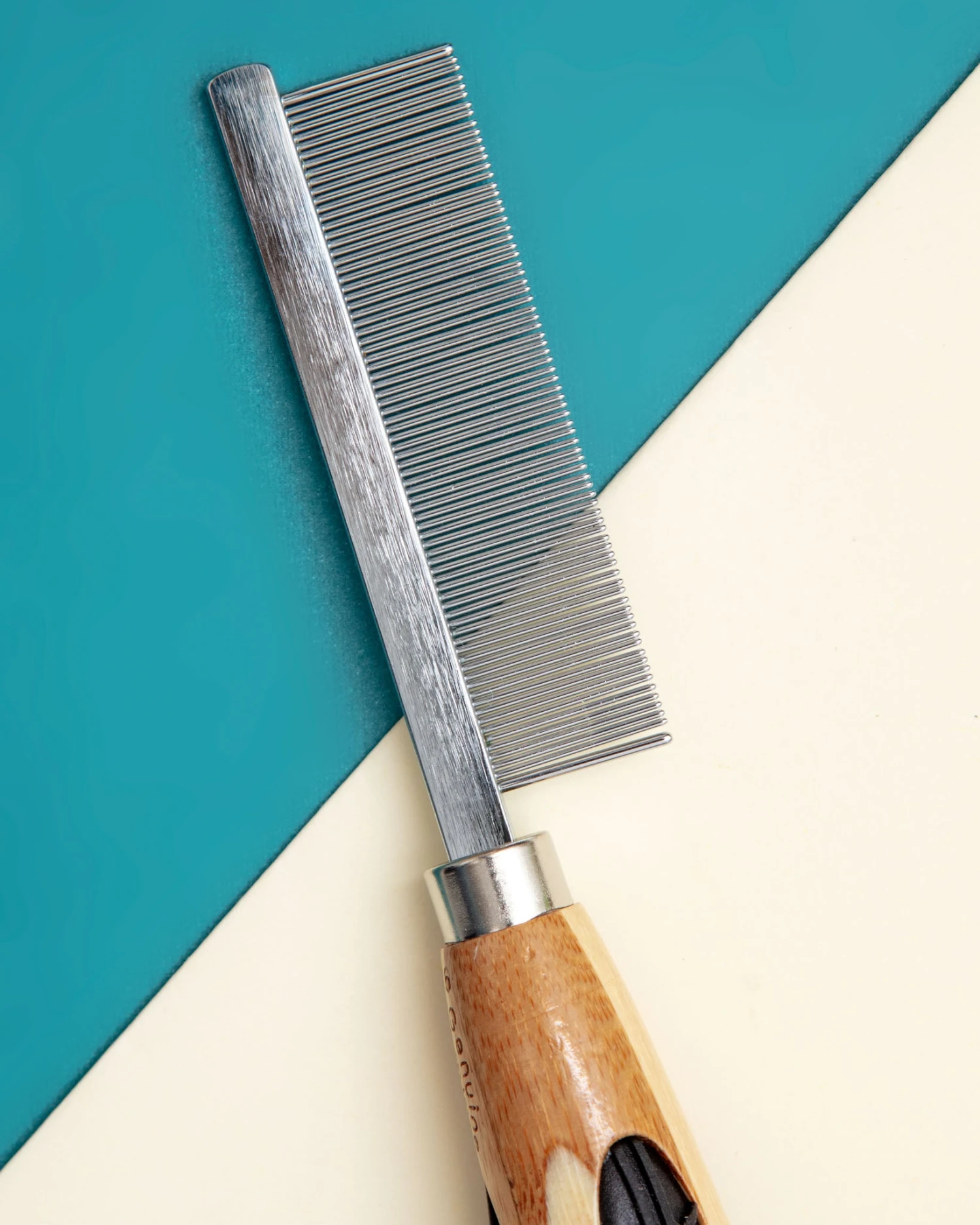 This fine-tooth metal comb is perfect for detangling knots in your dog or cat’s longer hair, or for shedding loose fur. Also great for getting those stubborn crunchies about of facial hair (hello, puppy beards!)