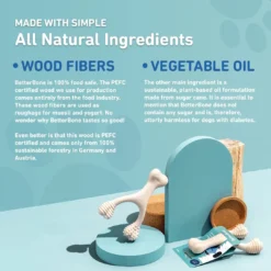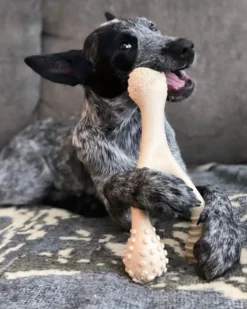 The BetterBone TOUGH dog chew is made to stand up to the most aggressive chewers. The Tough chew toy is still made with two all-natural ingredients and is still non-toxic, nylon-free, splinter resistant, and 100% sustainable.