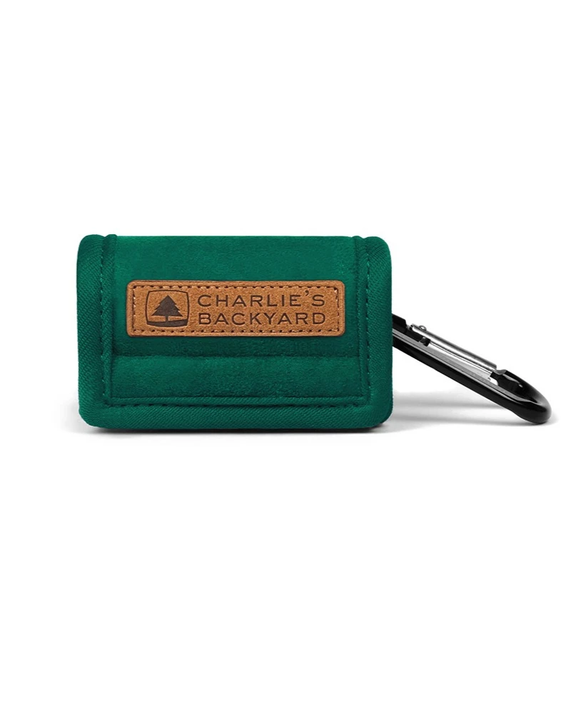 The Easy Poo Bag Pouch fits one standard poop roll, is soft and lightweight with a carabiner to clip on your leash, bag or belt.