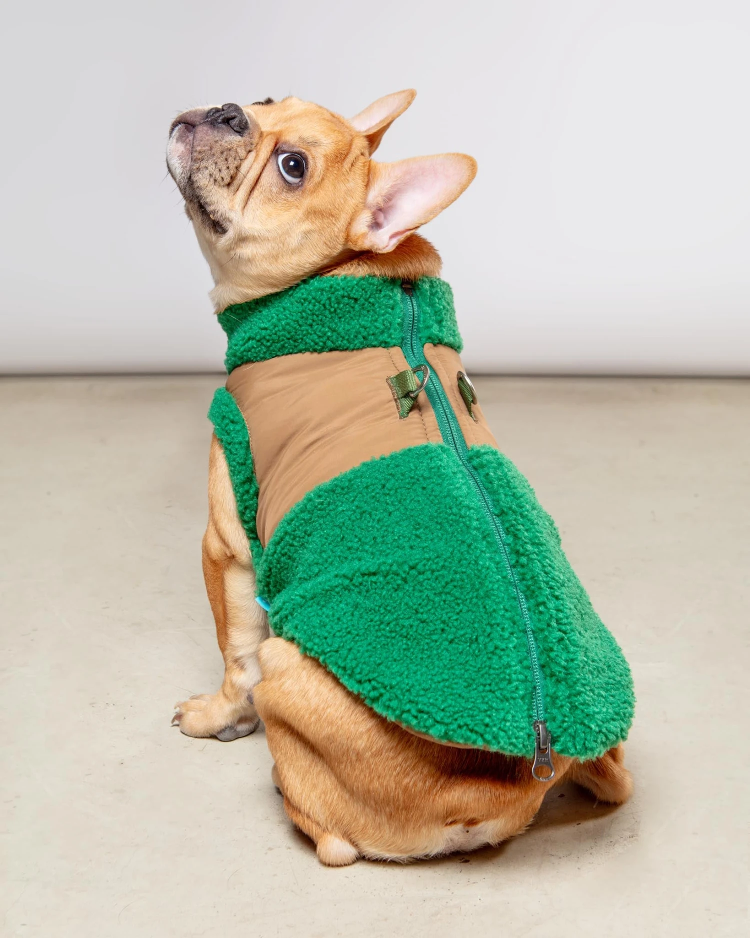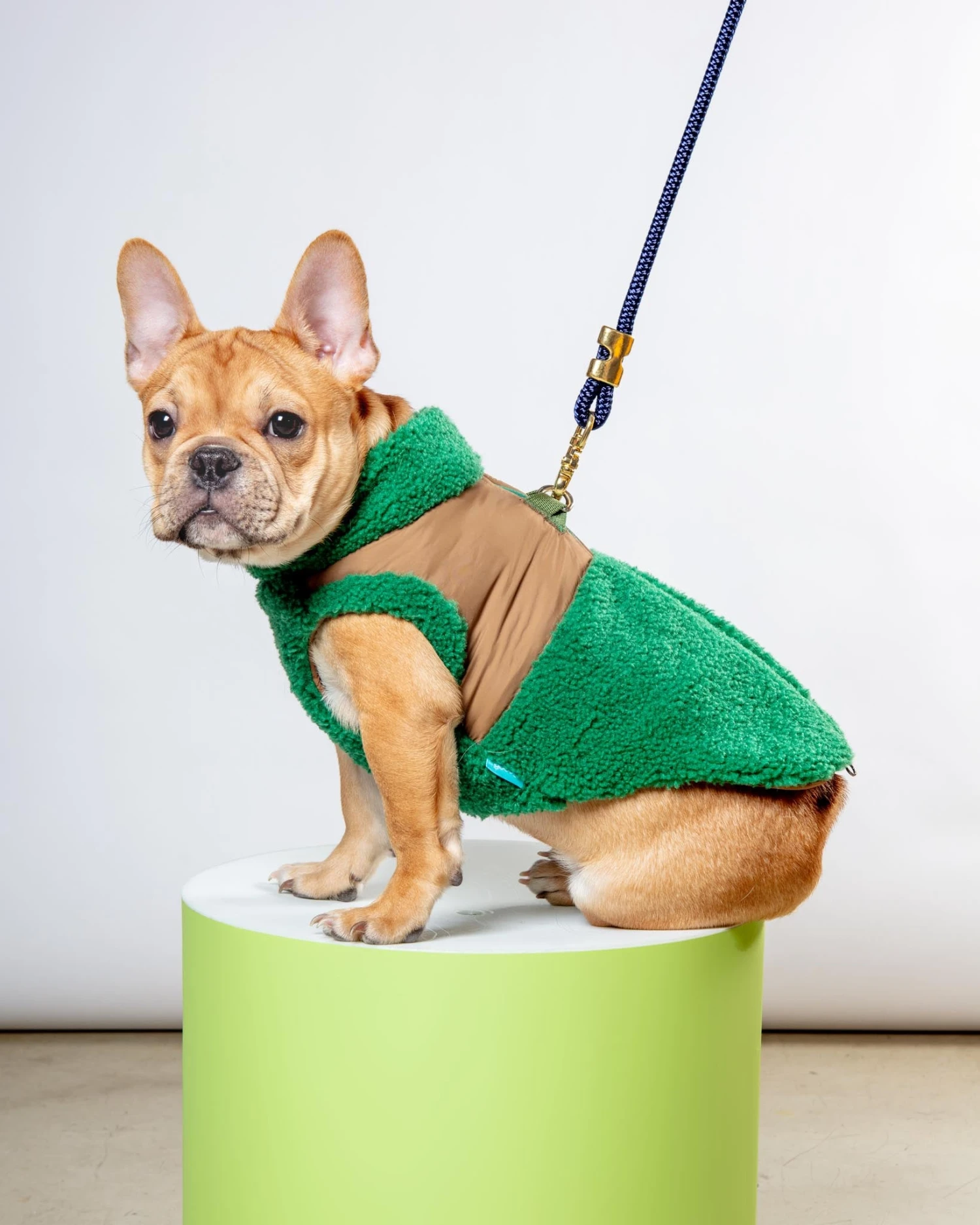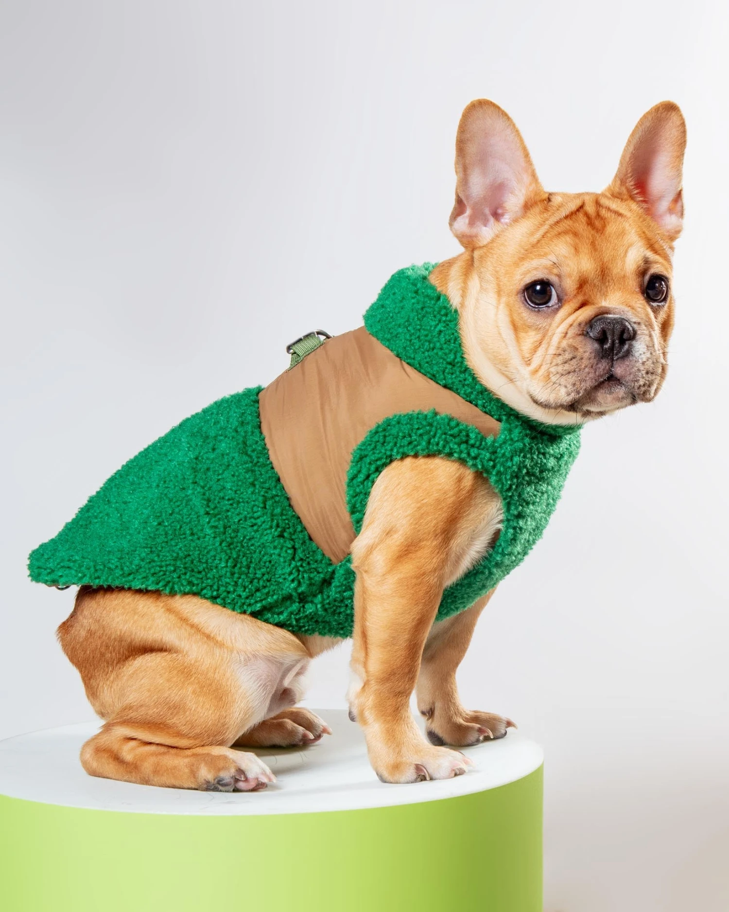 Harness built into a coat? We’ve got you covered! Getting your best friend all bundled up is a breeze with this ultra-cozy sherpa vest by GOOBY.
