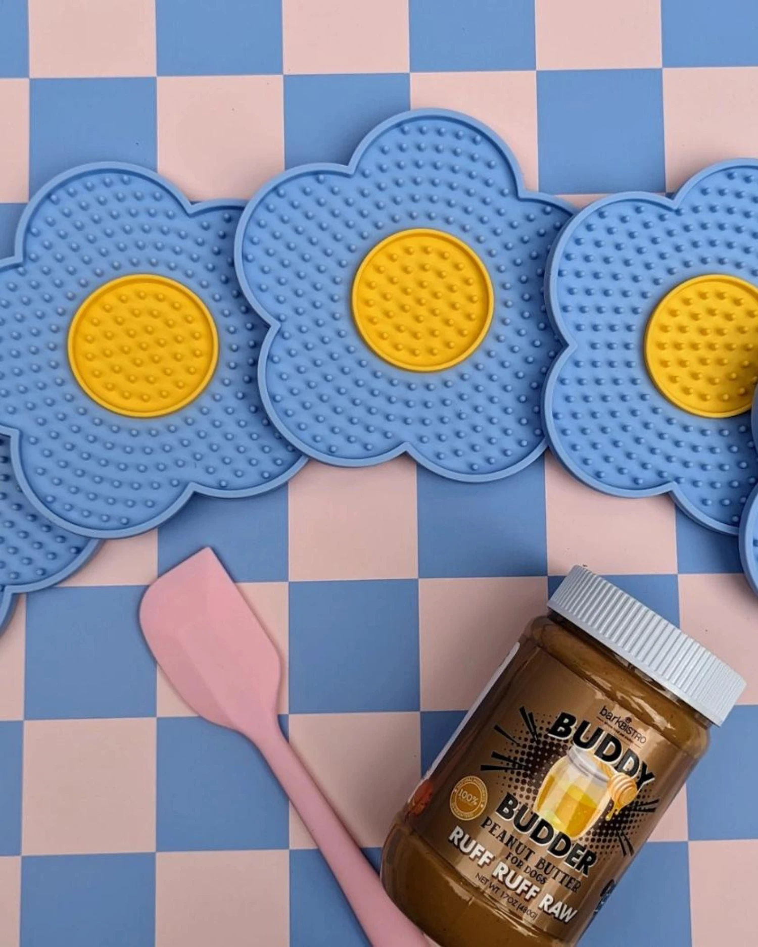Indulge your furry friends in a delightful mealtime experience with this charming Retro Blue Flower Lick Mat/Slow Feeder.