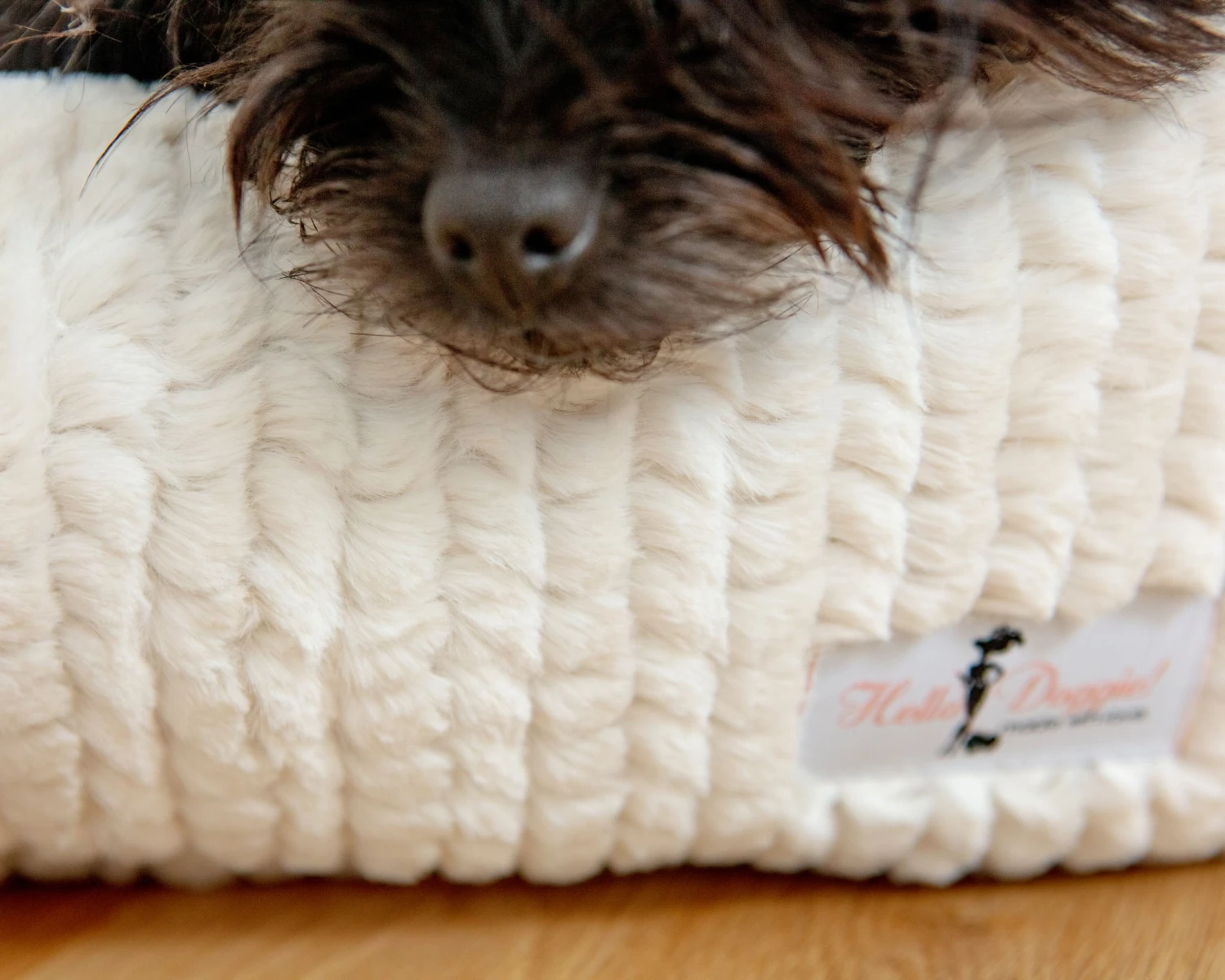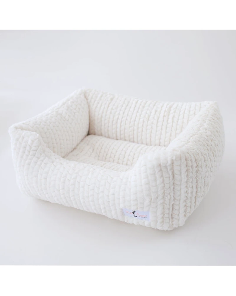 The Paris bed is made with luxurious, soft-cuddle fabric stuffed with 100% poly-fiber fill. It is easy to care for machine wash on a gentle cycle, no bleach or fabric softener, dry on low heat or air dry for brand new look every time.