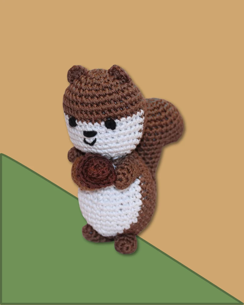 KNIT KNACKS Slappy The Happy Squirrel Organic Knit Dog Toy