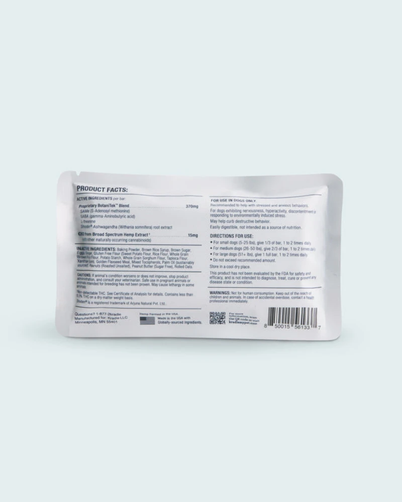 Soft, chewy and sooo delicious! Made with REAL peanut butter, broad-spectrum CBD derived from the highest quality American-grown hemp, and combined with proprietary BotaniTek™ blend of proven natural calming ingredients.