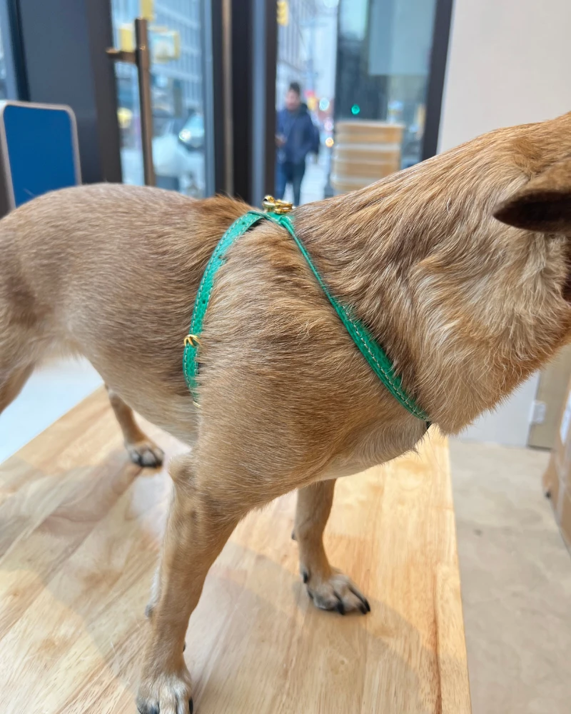 LA CINOPELCA Italian Leather Dog Harness In Green