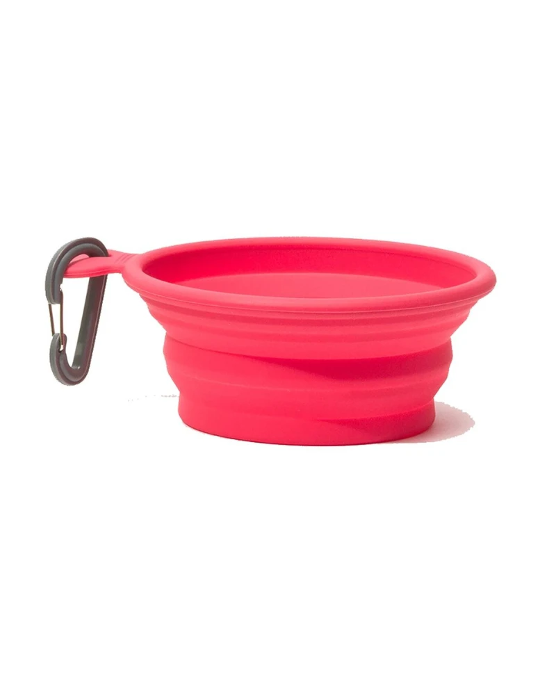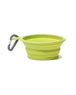 A convenient must-have for every dog owner. This bowl collapses to easily fits into pockets, purses, knapsacks…you name it. The included carabiner makes taking it on the go a breeze.Features: Super soft silicone collapses to less than 1″ yet rigid when expanded. Perfect for both food or water when on the go. Enclosed steel rim for added rigidity. Includes light weight, quick release, plastic carabiner clip so you can easily attach to leases, belts, backpacks.