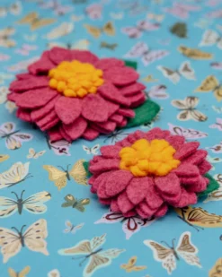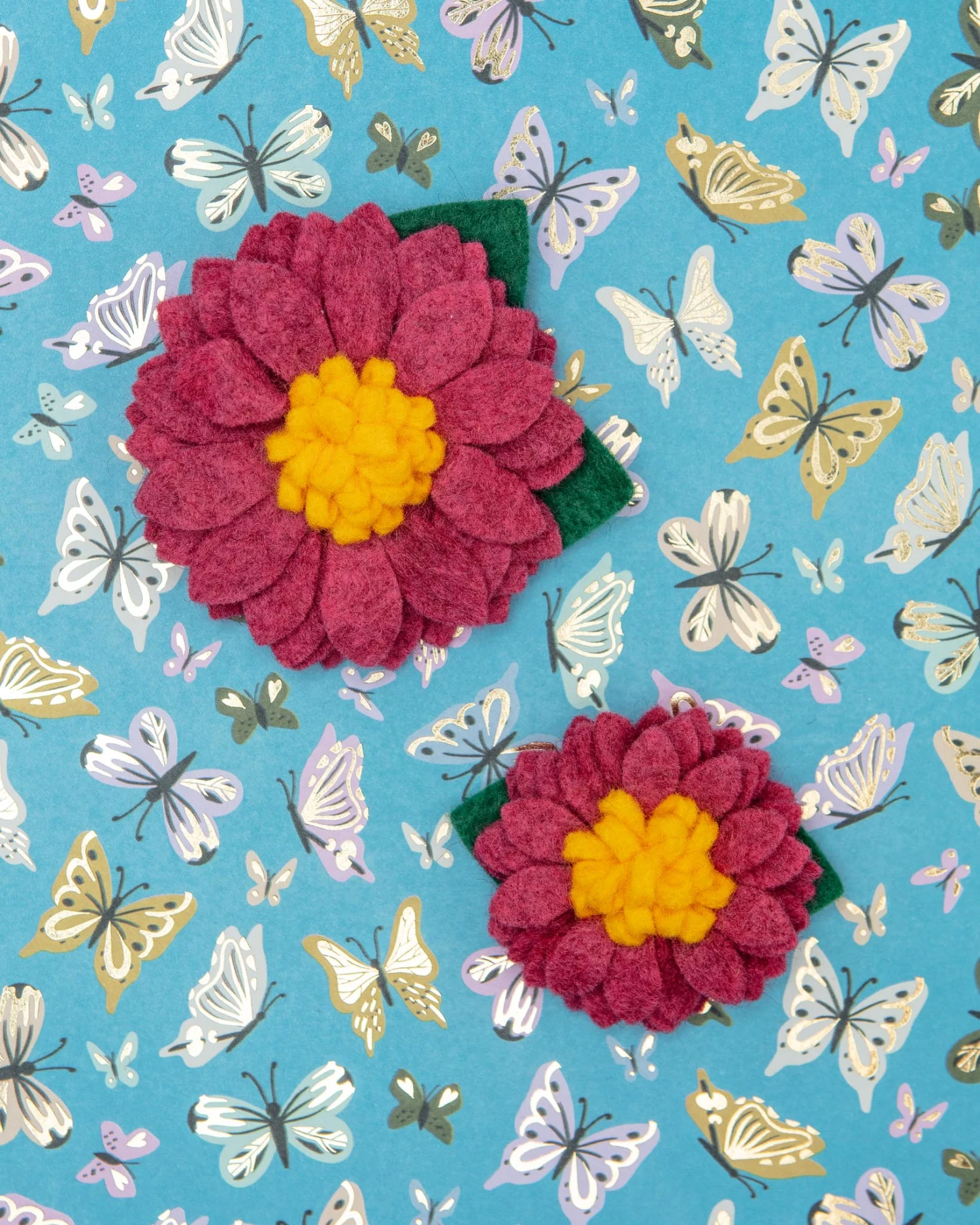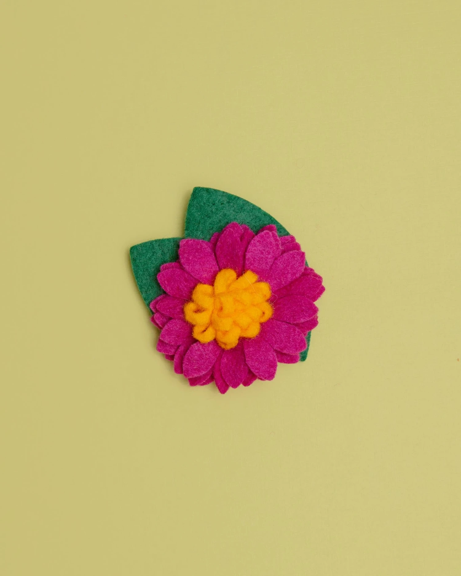 Elastic rings are attached to the flower to secure it to your dog’s collar. Easy to remove, and machine washable.