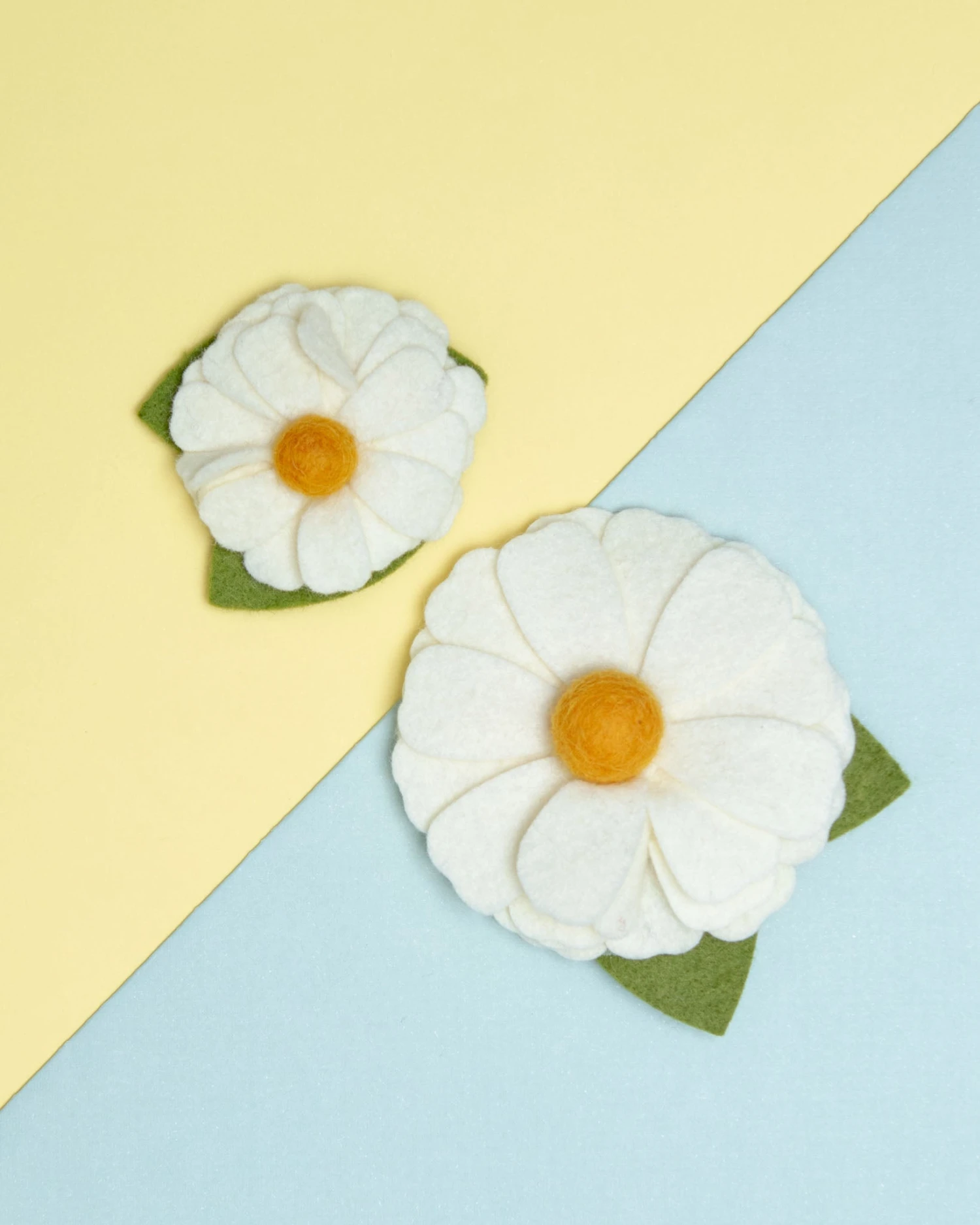 With 6 layers of handmade wool felt petals, this daisy is bold and beautiful, and perfect to accessorize your pet’s collar. Soften up your pup’s look, or freshen up their fashion for the coming season.