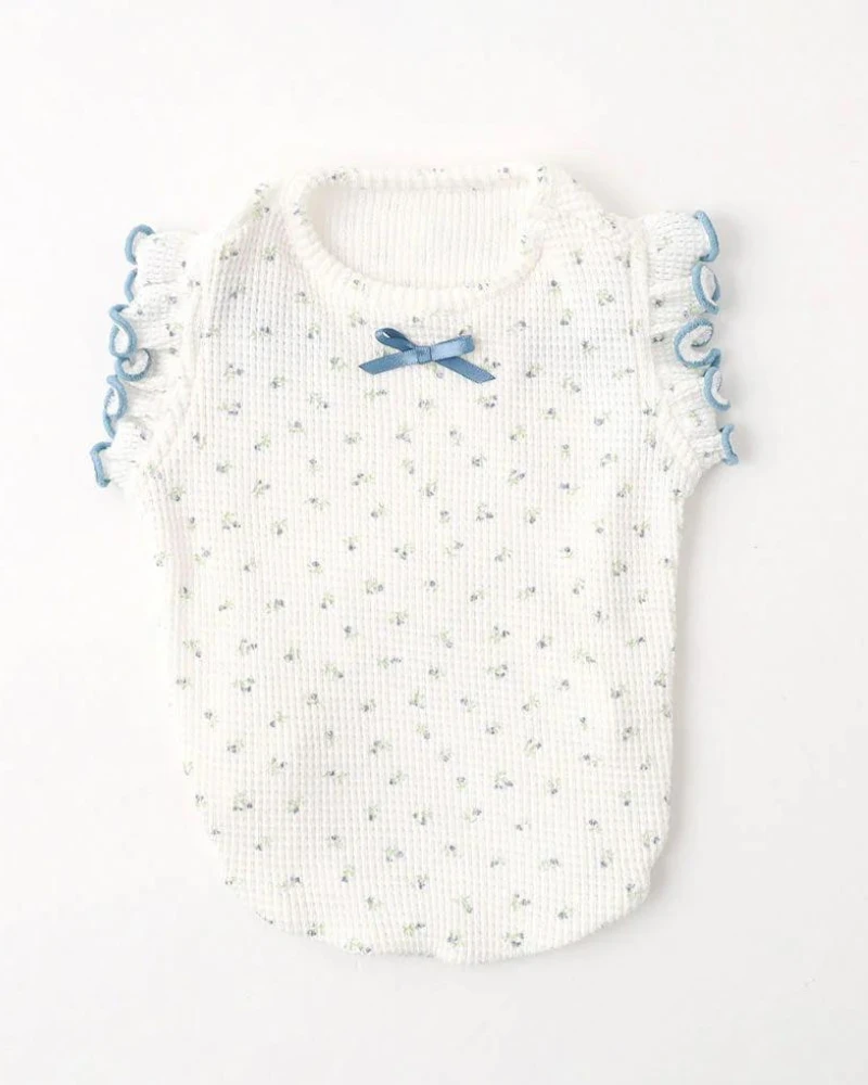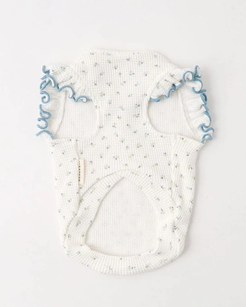 Floral details enhance the sweet look of this 100% cotton waffle texture top.