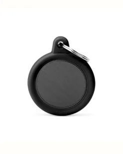 Enjoy the silence with the Hushtag Big Aluminum Black Circle ID Tag with Rubber. The first 100% silent ID Tag thanks to the innovative combination of metal and rubber.