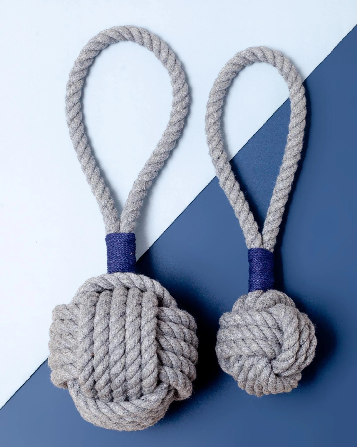 MYSTIC KNOTWORK is a family company whose mission is to keep the nautical knotwork tradition alive. Their Monkey Fist Dog Toy is a super durable rope-covered tennis ball for your dog. Throw it, tug it, your dog will love it!