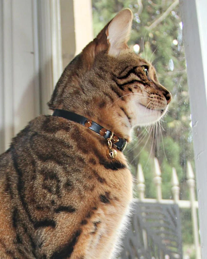 The result is a luxurious hand-painted studded leather collar that is super comfortable to wear yet tough enough to keep up with the demands of an active cat.