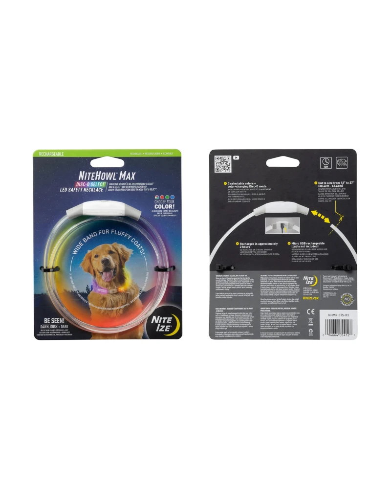 The rechargeable NiteHowl and NiteHowl Mini were designed for pups of all sizes, providing a full ring of illumination with cut-to-size customization and Disc-O Select “choose your color” technology.