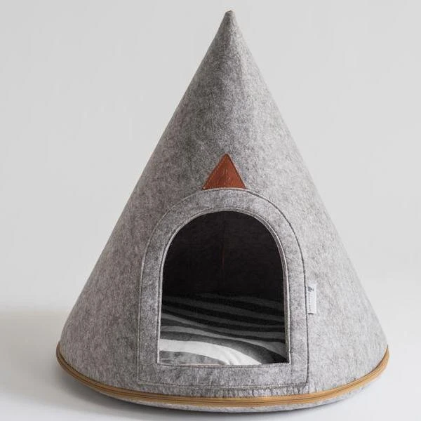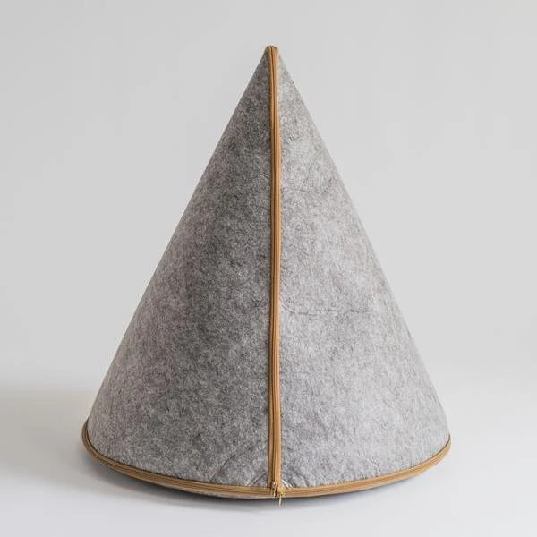 This lightweight, modern pet home is a wonderful and cozy hideaway. Shaped in a cone with an arched opening, it includes an extra comfortable cushion that is removable. Zipper construction enables easy assembly and access throughout for cleaning including the interior. This home can be rolled up and placed into a convenient bag allowing you to carry a familiar spot for your pet when traveling. Its simple and sophisticated design blends easily with your home decor.