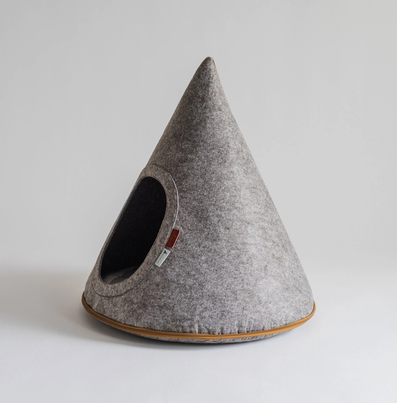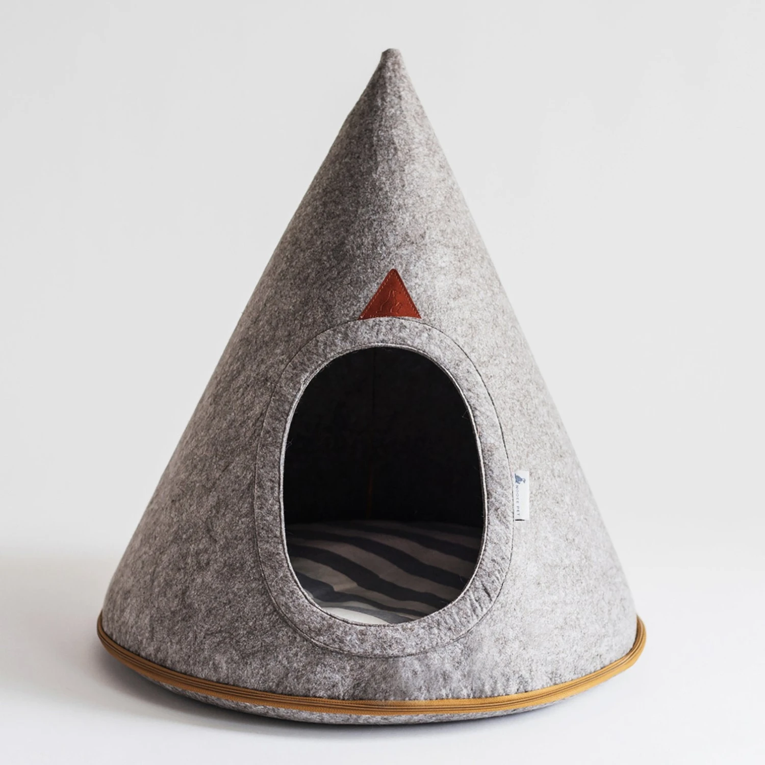 This lightweight, modern pet home by NOOEE PET is a wonderful and cozy hideaway. Shaped in a cone with an arched opening, it includes an extra comfortable cushion that is removable. Zipper construction enables easy assembly and access throughout for cleaning including the interior. This home can be rolled up and placed into a convenient bag allowing you to carry a familiar spot for your pet when traveling. Its simple and sophisticated design blends easily with your home decor.