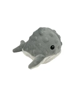 - 4″ wide ball-shaped twin pack dog toy shaped like cute puffer and whale