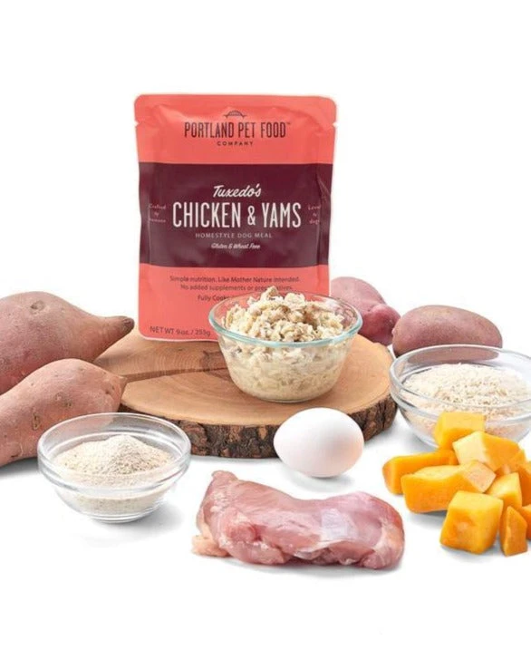 100%Ā of the ingredients in PORTLAND PET FOOD COMPANY’s Chicken & Yams dog meal recipe are approved for human consumption. Their chicken is sourced from Cascade Natural Meats in the Northwest. We use no rendered meats.