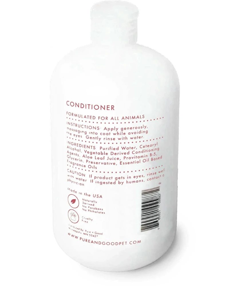 Formulated for all animals, PURE + GOOD’s conditioner is soft and moisturizing. Combining ingredients beneficial for improving your pet’s coat and wellbeing, a single wash will leave your pet refreshed and smelling pure and good.