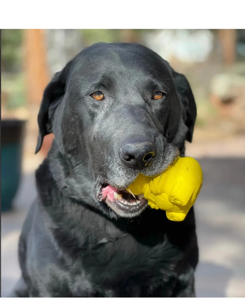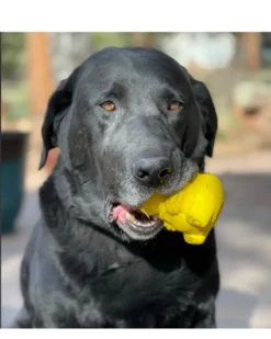 The Honey Bear Treat Dispenser by SODA PUP is designed to withstand the abuse of most “power chewer” dogs.