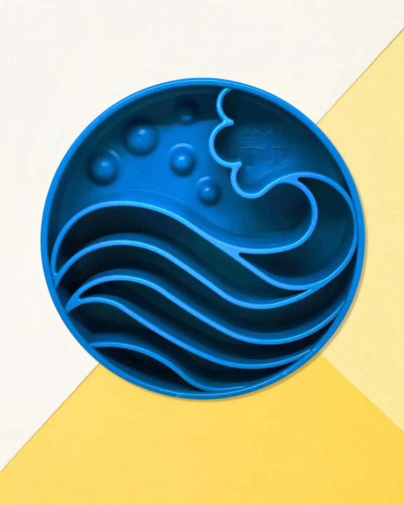 Research shows that most slow feeder bowls are ineffective at slowing down your dog’s eating. The wave bowl by SODA PUP solves this problem by upping the challenge for your dog.