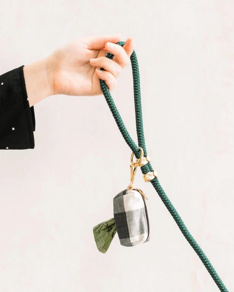 Your dog will turn heads at the dog park with this evergreen marine rope paired with luxe brass hardware.