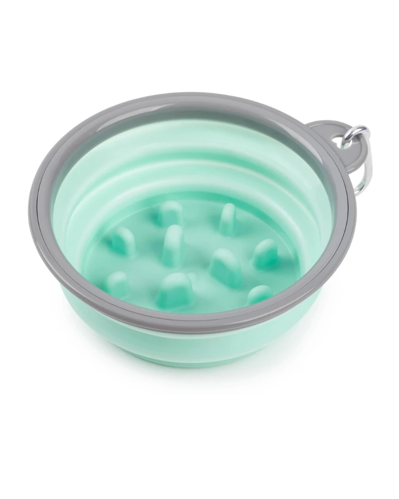 This collapsible slow feeder is perfect for on the go adventures with your pet. Hikes, Picnics, Park visits, and Camping are all made easier with this pet bowl to-go, and slow!